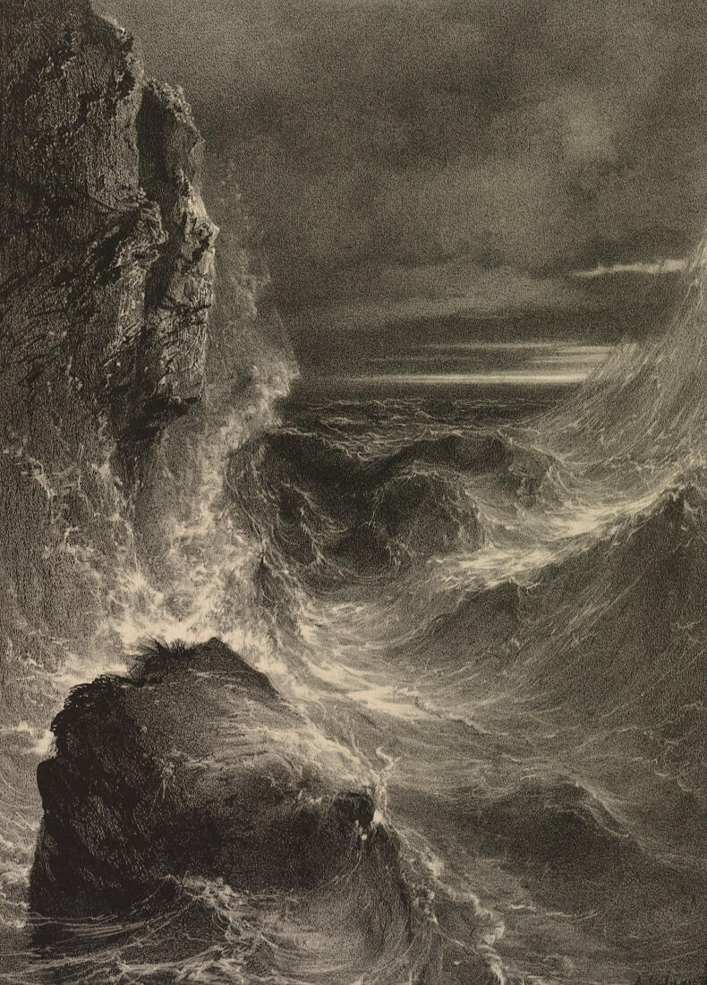 Exhaustion seeps into his water-logged bones. Gaspard wipes his forehead, realising that he's losing feelings in his fingers. Wearily, he cranes his neck towards the skies above to see a flock of gulls circling above, chanting in a chorus of hungry mews. Sorrowful rain drizzles onto Gaspardās cheeks, each miniscule droplet stinging like ice.